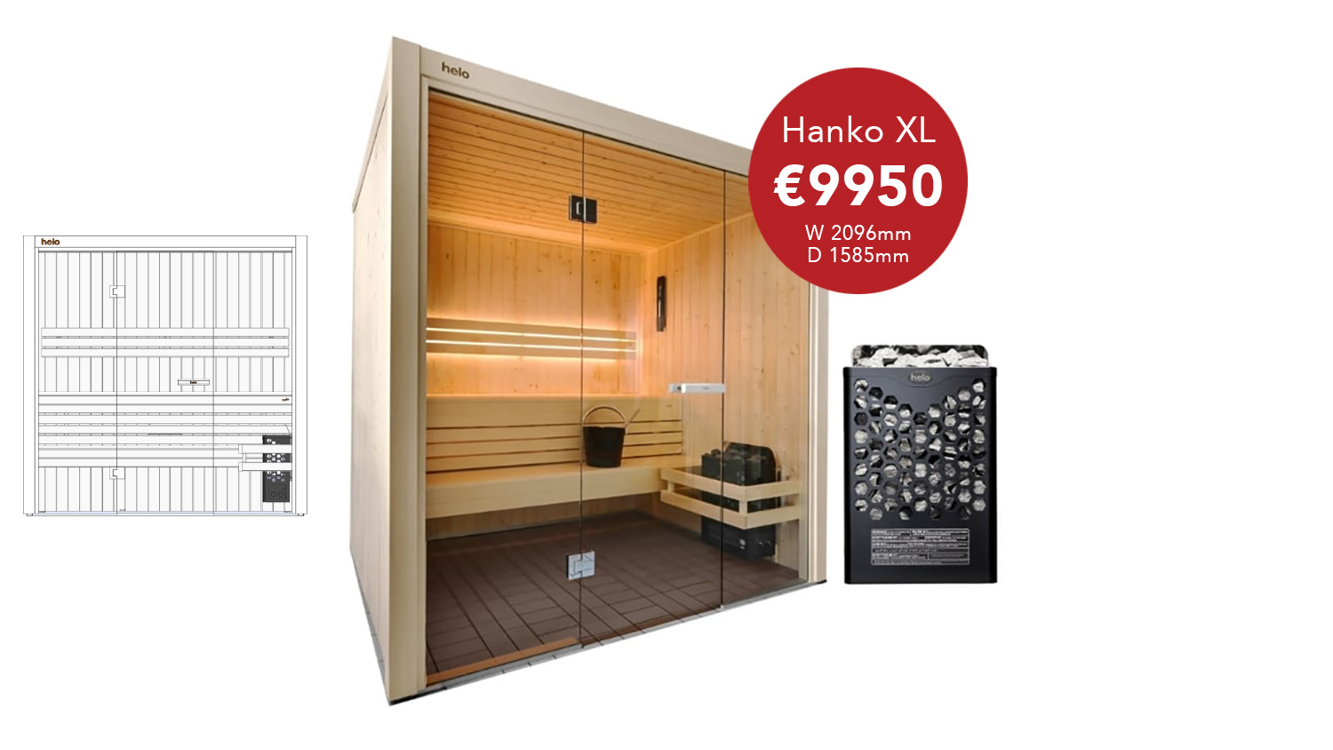 De Hanko saunacabines zijn eenvoudig te monteren en op dezelfde dag klaar voor gebruik. Vanzelfsprekend wordt ieder model geleverd met een betrouwbare Helo saunakachel. Het compacte S-model is uitgerust met de Vienna-kachel, terwijl de M-, L- en XL-modellen worden geleverd met de elegante Hanko-kachel..